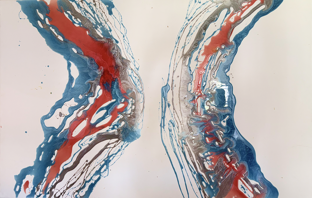 What began as an experiment with resin turned into a constellation of glowing, star-dusted paintings. By sealing crystals and glow-in-the-dark pigments into layered resin, Katerina Huezo created luminous surfaces where stars, nebulae, and cosmic rivers seem to drift across the canvas. Glitter and unexpected textures add a playful sparkle, inviting viewers to pause, explore, and discover new details each time — just like finding a new star in a familiar night sky.
